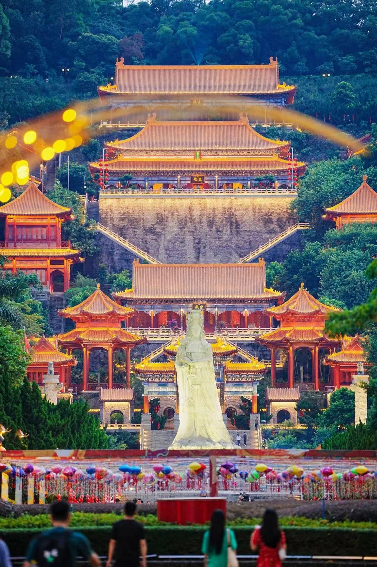 晚会主舞台南沙天后宫作为妈祖文化的重要地标,其古建筑群与海岸线自然风光化作天然舞台背景,沿岸精心布置的岭南主题灯组、水上浮动舞台、无人机光影矩阵与天后宫灯光秀交相辉映,形成“一灯一故事,一光一舞台”的叙事脉络。观众在欣赏节目的同时,亦沉浸感受“推窗见灯海”的诗意栖居。