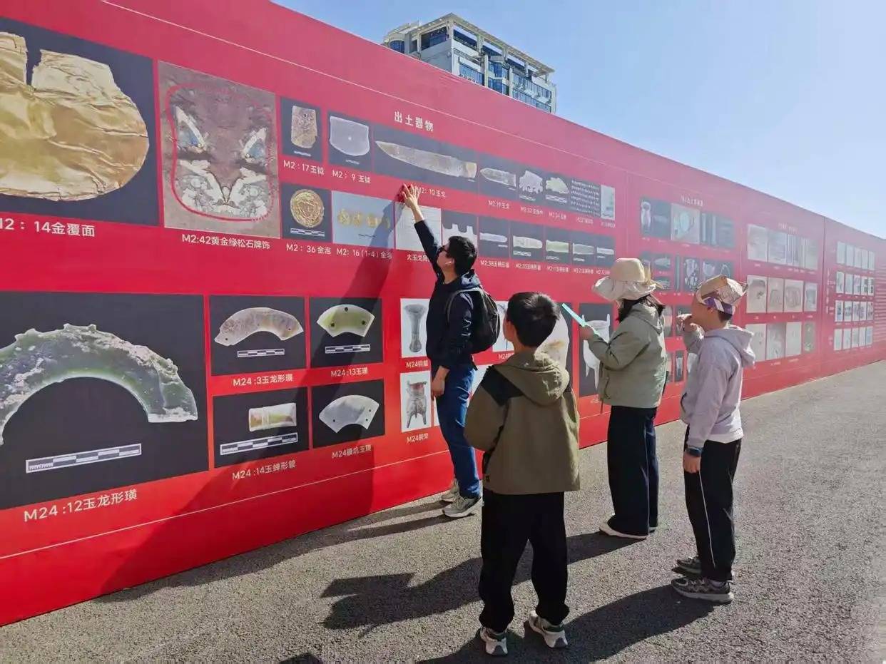 蹴鞠寄情,印章留韵,解锁古今雅趣互动区内,蹴鞠体验吸引了不少市民驻足。这项源自中国古代的足球运动,在商都遗址旁焕发新意,大人孩子轮流上场,欢声笑语不断。一旁的帐篷休闲区,几组家庭正在小憩,享受着清明时节的微风。在考古工地露营,成为不少人朋友圈里的独特画面。盖章打卡区同样热闹。工作人员准备了多款以书院街出土文物纹样为蓝本设计的印章,市民可拓印商代纹样书签,将“商都记忆”带回家。完成“宝藏任务书”并在社交平台发布的参与者,还可领取彩陶修复套装盲盒、主题书签、文创贴纸等文创产品。探访商都贵族墓,触摸早商文明集中讲解期间,讲解员带领参观队伍有序地向发掘现场的核心区域移动。“这里是郑州商城近年来最为重要的考古发现,兆沟、通道、墓葬等遗迹保存完好,展示了早商时期高等级贵族丧葬礼制的规范。”讲解员详细介绍着书院街墓地的考古价值。在考古体验区,来自浙江金华的李女士正带着四年级的儿子用小铲子清理土中的碎片。工作人员介绍,这些是真实的文物碎片,因无法修复才用于体验活动。李女士说,这是她第一次带孩子参观室外考古现场,“我本人很喜欢考古,这样的体验很难得”。一旁,来自浙江义乌的一对年轻夫妇也带着两个儿子,对照“宝藏任务书”在展板前寻找答案,父母不时进行讲解。考古现场变课堂,让历史可感可传活动现场,退休市民李先生不时用手机拍摄记录。他运营着一个历史类视频号:“网上看到工地开放就迫不及待来了。既能学习,又能传播,希望让更多人了解商都文化。”来自郑州大学考古学专业的两名大二学生也专程前来,她们最近正在学习夏商周历史和田野考古,希望将课堂知识与实地考察相结合。“课堂上讲的,今天能亲眼看到,感觉完全不一样。”像李先生和郑大学生这样的参观者并非个例。考古工地对公众开放的模式近年来备受关注,市民可以近距离观摩遗址原貌、了解考古工作流程。那些原本学术报告和书本里才有的考古知识,变得可感可触,拉近了公众与历史之间的距离。