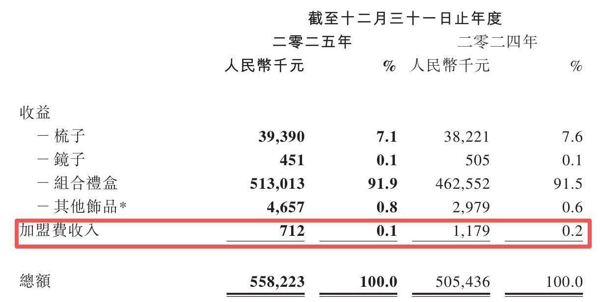 记者注意到,虽然公司加盟店铺总数有所增加,但加盟费收入出现“跳水”。2025年,公司加盟费收入约为71.2万元,与2024年的约117.9万元相比,同比减少39.6%。