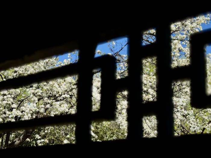 洁白花瓣随风轻拂,与青瓦灰墙、修竹茂林相互映衬,吸引不少市民与摄影爱好者前来游览拍摄。